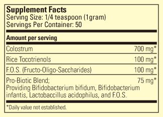 コロストラムは包括的な抗体と免疫因子を得ることが出来る唯一のサプリメントです。チャイルドライフでは最も品質の高い牛の初乳のみを使用しています。それは免疫グロブリン、成長因子、タンパク質およびペプチドに最も富んでいる出産後の1番目と2番目搾乳から作られています。