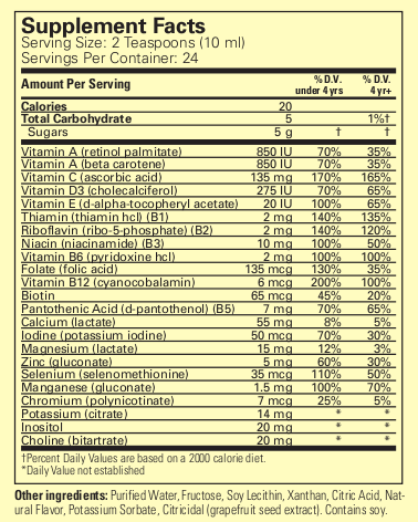 ビタミンやミネラルなどの必須栄養素がバランス良く総合的に含まれたマルチビタミンです。これらの必須栄養素は健康な発育、強い免疫機能、感情や精神の活力をサポートします。更に天然オレンジ&マンゴー味のリキッドタイプで、お子様にも美味しく簡単に与えて頂けます♪