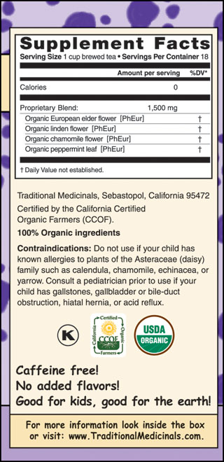 風邪のひき始め、風邪の季節にお子様の体を丈夫にするのを助けるハーブティーです。どうやら風邪にかかったかな?という時にご利用下さい。