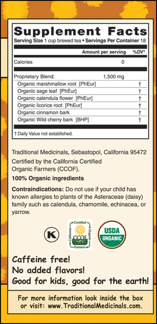 お子様の喉の調子を整えて、喉の健康を助けるハーブティーです。咳で喉が痛い、喉がガラガラ、声が変、声が出ない、そんな時にご利用下さい。